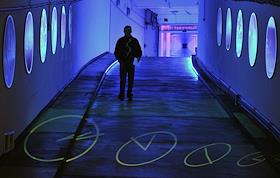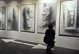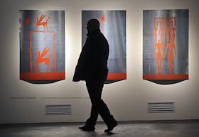 Посетитель на церемонии открытия выставки "Небосклон", организованной Московским планетарием и "Крокин Галерея". Выставка прошла на территории арт-пространства Московского планетария.