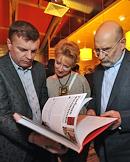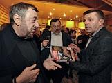 Режиссер Павел Лунгин (слева) и президент холдинга "ГРУППА ИМА" Андрей Гнатюк (в центре) на презентации шестого тома "Намедни" журналиста Леонида Парфенова (справа) в кафе "Булка" на территории Центрального парка культуры и отдыха им. М.Горького.