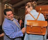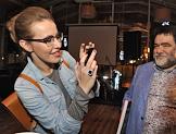 Журналист Ольга Ципенюк (справа) на презентации шестого тома "Намедни" журналиста Леонида Парфенова (слева) в кафе "Булка" на территории Центрального парка культуры и отдыха им. М.Горького.