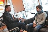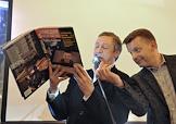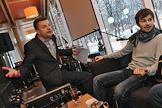 Архитектурный критик Григорий Ревзин (слева) на презентации шестого тома "Намедни" журналиста Леонида Парфенова (справа) в кафе "Булка" на территории Центрального парка культуры и отдыха им. М.Горького.