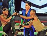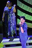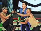 Американский певец Адам Ламберт (справа) во время выступления на своем сольном концерте в концертном зале Crocus City Hall.