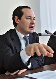 Руководитель департамента топливно-энергетического хозяйства города Москвы Павел Ливинский на пресс-конференции "Освещение в Москве. Итоги работы в 2012 году. Планы на 2013 год". Пресс-конференция прошла в мэрии города.
