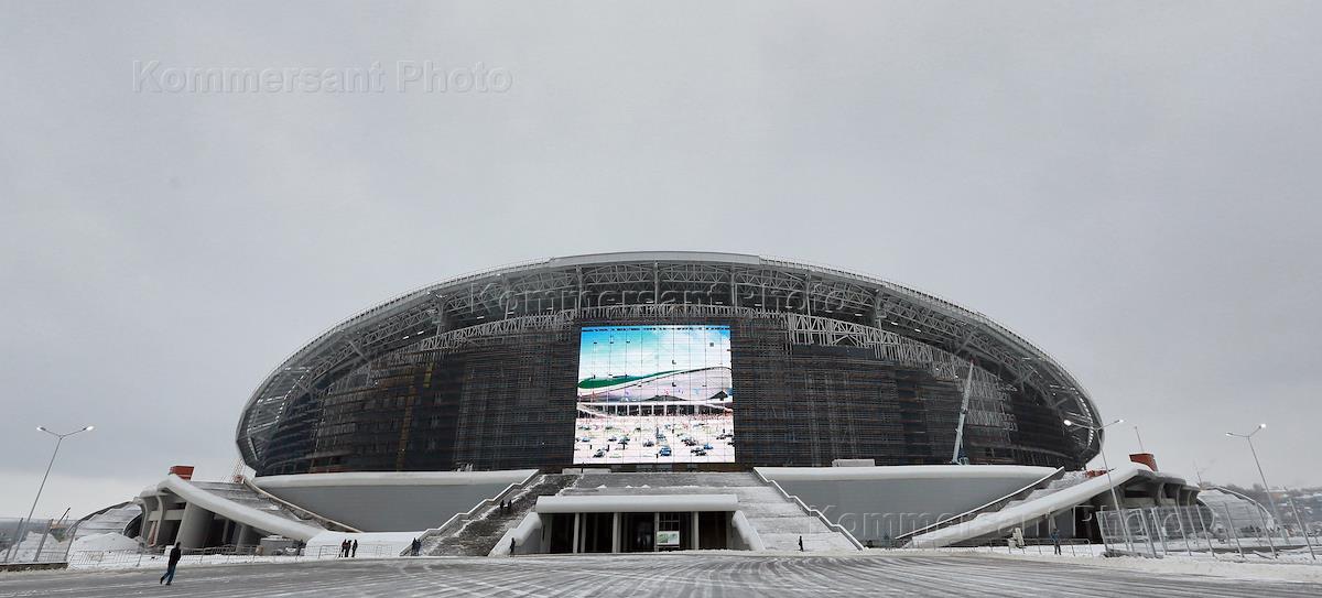 Строительство футбольного стадиона "Казань-Арена", где пройдут церемонии открытия и закрытия Универсиады 2013 .