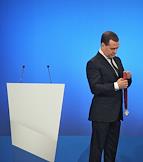 Военно-промышленная конференция "Актуальные вопросы развития оборонно-промышленного комплекса Российской Федерации". Председатель правительства России Дмитрий Медведев во время конференции в Большом зале Дома правительства России.