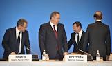 Военно-промышленная конференция "Актуальные вопросы развития оборонно-промышленного комплекса Российской Федерации". Слева направо: министр обороны России Сергей Шойгу, заместитель председателя правительства России Дмитрий Рогозин, председатель правительства России Дмитрий Медведев и министр промышленности и торговли России Денис Мантуров во время конференции в Большом зале Дома правительства России.