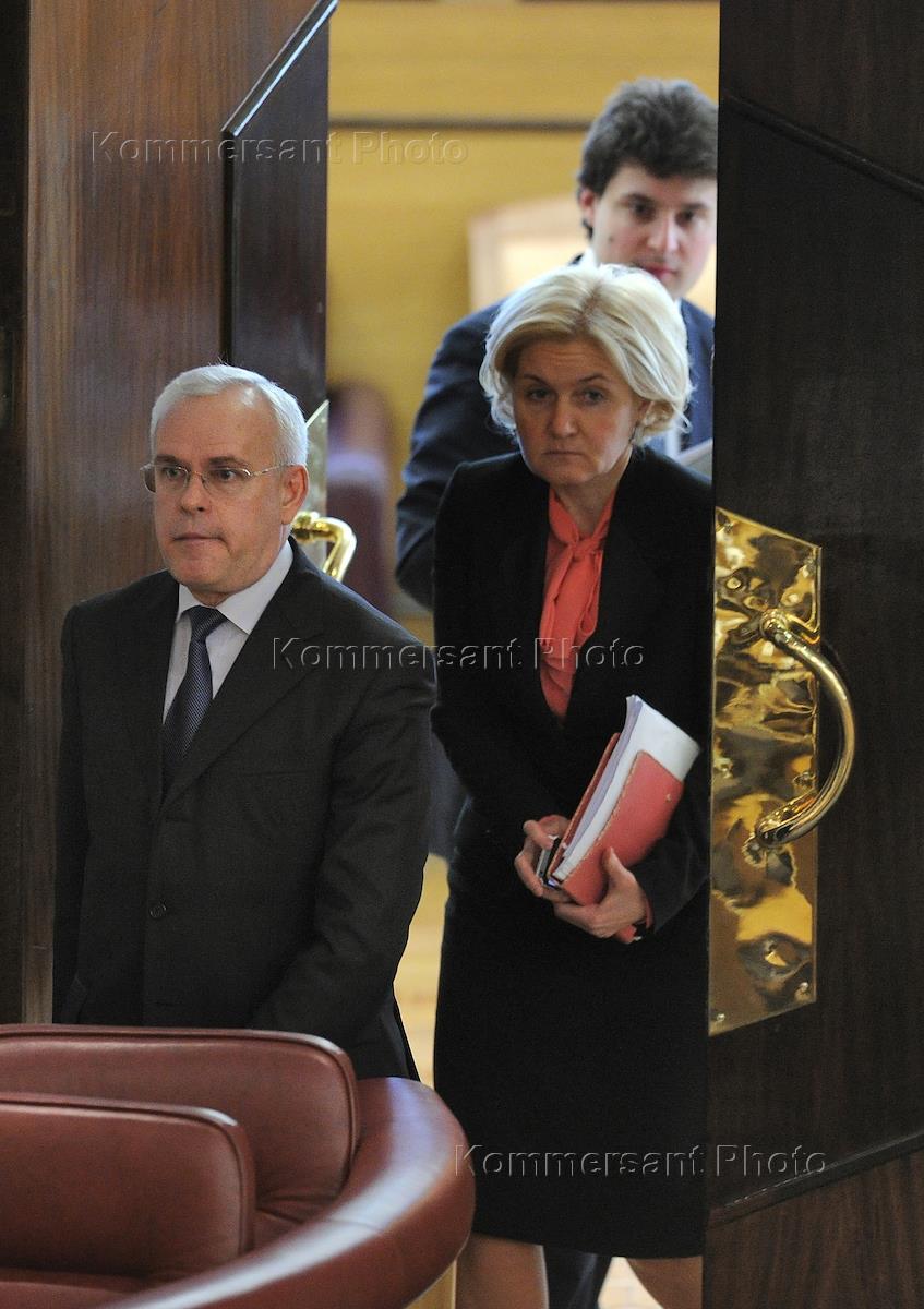 Заместитель министра образования и науки России Игорь Реморенко (слева) и заместитель председателя правительства России Ольга Голодец (справа) на пленарном заседании Государственной думы России.