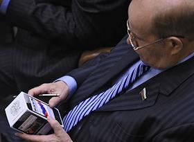 Представитель в Совете Федерации России от исполнительного органа государственной власти Белгородской области Николай Рыжков во время заседания Совета Федерации России.
