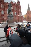 Виды Москвы. Уборка снега у памятника маршалу Георгию Жукову на Манежной площади.