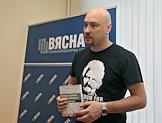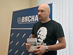 Белорусский правозащитник Валентин Стефанович во время презентации Хроники ситуации с правами человека в Беларуси в 2012 году.