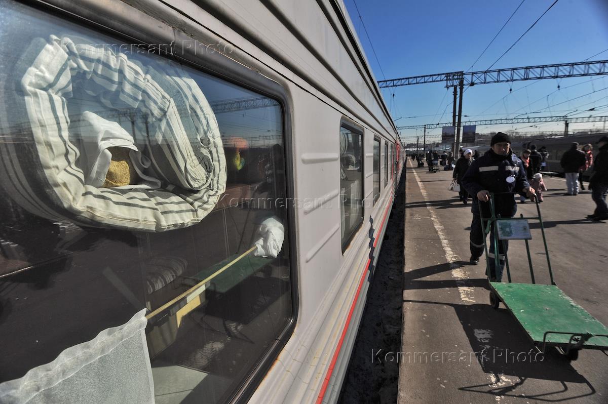 Пассажиры во время прохода на перрон Казанского вокзала.