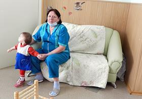 Дом ребенка № 13. Сотрудницы дома ребенка во время кормления воспитанников.