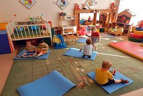 Дом ребенка № 13. Воспитательница с детьми в игровой комнате.
