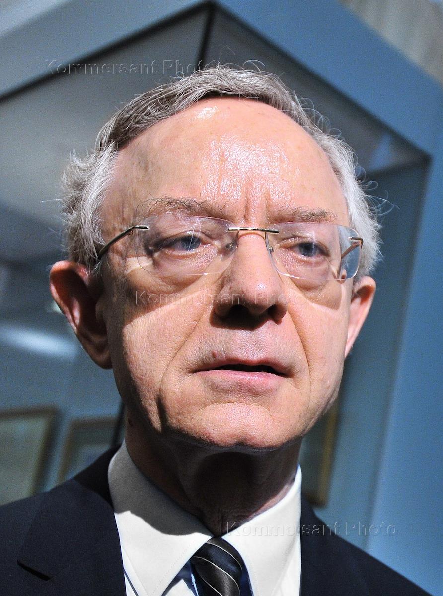Посол Дании в России Том Рисдаль Йенсен перед началом церемонии открытии выставки "Российские императрицы: Мода и Стиль. Конец XVIII – начало XX века" в рамках празднования 400-летнего юбилея Дома Романовых. Выставка прошла в Выставочном зале федеральных архивов.