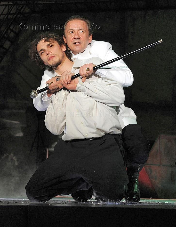 Актер Сергей Кемпо (слева) и художественный руководитель Театра имени М.Ермоловой Олег Меньшиков (справа) в спектакле "Портрет Дориана Грея". Спекталь в постановке режиссера Александра Созонова прошел на сцене Театра имени М.Ермоловой.