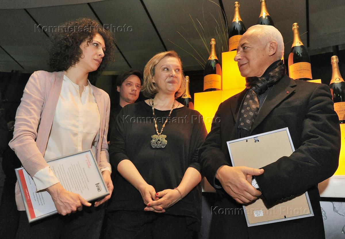 Слева направо: актриса Ксения Раппопорт, режиссер Марина Брусникина и президент государственного учреждения культуры города Москвы "Московский международный дом музыки" Владимир Спиваков на коктейле, посвященном благотворительному концерту "Признание в любви". Коктейль, организованный часовым Домом Breguet, прошел в Swissotel Красные Холмы.