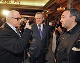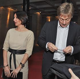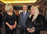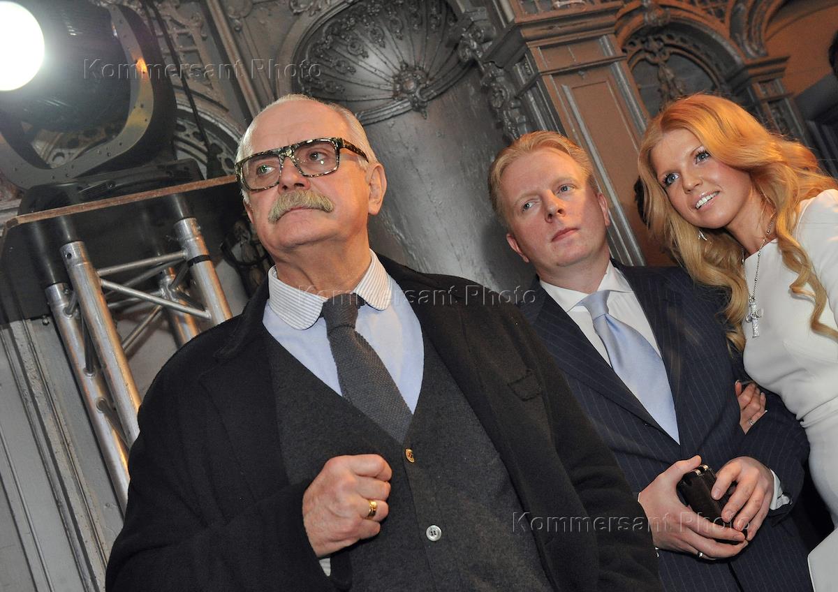 Вечеринка, в честь дня рождения российского издания журнала "The Hollywood Reporter". Слева направо: председатель союза кинематографистов России, кинорежиссер Никита Михалков, председатель совета директоров - генеральный директор Российского Авторского Общества Федотов Сергей с супругой на вечеринке в ресторане "Каста Дива".