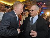 Вечеринка, в честь дня рождения российского издания журнала "The Hollywood Reporter". Председатель совета директоров - генеральный директор Российского Авторского Общества Федотов Сергей (слева) и председатель союза кинематографистов России, кинорежиссер Никита Михалков (справа) на вечеринке в ресторане "Каста Дива".