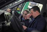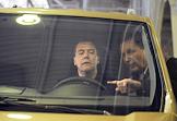 Председатель правительства России Дмитрий Медведев (слева) во время посещения Горьковского автомобильного завода (ГАЗ).