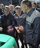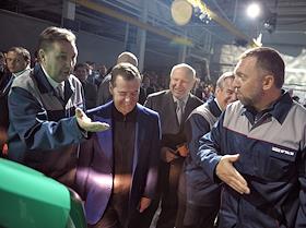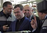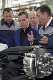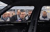 Председатель правительства России Дмитрий Медведев во время посещения Горьковского автомобильного завода (ГАЗ).