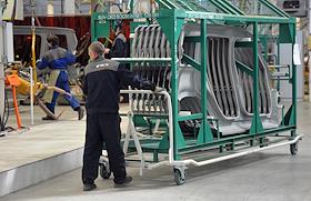 Цех сборки Горьковского автомобильного завода (ГАЗ). Кабина автомобиля "ГАЗель" на конвейере.