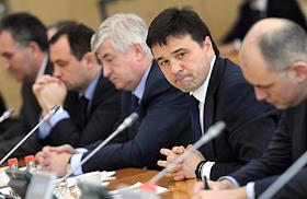 Временно исполняющий обязанности губернатора Московской области Андрей Воробьев (слева) на встрече с депутатами Государственной думы России от Московской области. Встреча прошла в Доме правительства Московской области.