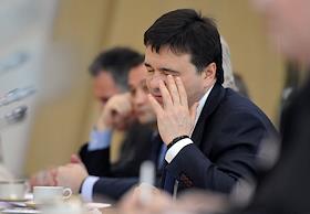 Временно исполняющий обязанности губернатора Московской области Андрей Воробьев на встрече с депутатами Государственной думы России от Московской области. Встреча прошла в Доме правительства Московской области.