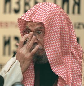 Генеральный секретарь Всемирной исламской лиги шейх Абдалла бин Абдул-Мохсин ат-Турки на пресс-конференции в пресс-центре газеты "Известия".