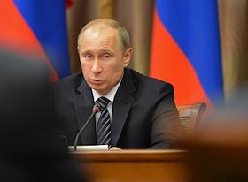Президент России Владимир Путин на совещании по вопросам переселения граждан из аварийного жилищного фонда.