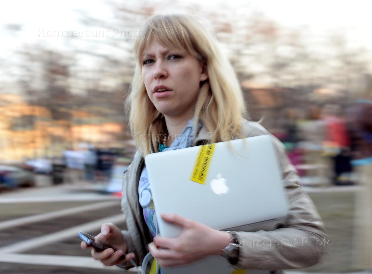 Участница митинга против политических репрессий (приурочен к началу процесса над Алексеем Навальным в Кирове) прошел в Новопушкинском сквере.