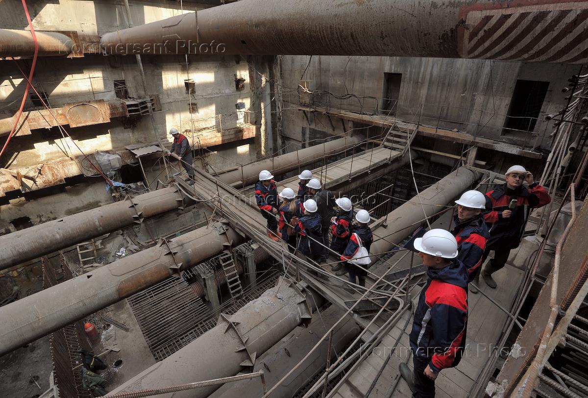 Строительство Алабяно-Балтийского автомобильного тоннеля. Журналисты во время осмотра строительства.