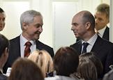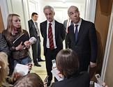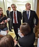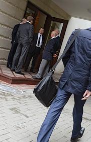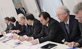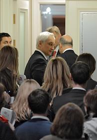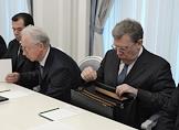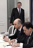 Советник президента России Сергей Глазьев (в центре)перед началом совещания по экономическим вопросам в резиденции "Бочаров ручей-2".