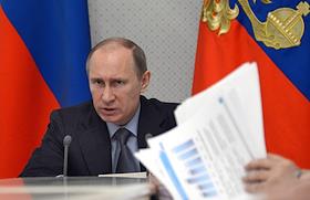 Президент России Владимир Путин (второй слева) перед началом совещания по экономическим вопросам. Слева направо: руководитель администрации Президента России Сергей Иванов, заместитель председателя Правительства России Аркадий Дворкович, министр финансов России Антон Силуанов, председатель комитета Государственной думы России по бюджету и налогам Андрей Макаров, советник президента России Сергей Глазьев, председатель совета директоров МДМ-Банка Олег Вьюгин, председатель Комитета гражданских инициатив Алексей Кудрин в резиденции "Бочаров ручей-2".