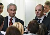 Совещание по экономическим вопросам. Слева направо: председатель Комитета гражданских инициатив Алексей Кудрин, министр финансов России Антон Силуанов, председатель комитета Государственной думы России по бюджету и налогам Андрей Макаров во время совещания в резиденции "Бочаров ручей-2".