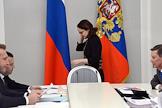 Помощник президента России Эльвира Набиуллина (слева) и председатель Центрального Банка России Сергей Игнатьев (в центре) во время совещания в резиденции "Бочаров ручей-2".
