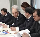 Совещание по экономическим вопросам. Слева направо: руководитель администрации Президента России Cергей Иванов, заместитель председателя Правительства России Аркадий Дворкович, министр экономического развития России Андрей Белоусов, министр финансов России Антон Силуанов, председатель комитета Государственной думы России по бюджету и налогам Андрей Макаров во время совещания в резиденции "Бочаров ручей-2".