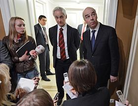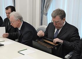 Совещание по экономическим вопросам. Слева направо: советник президента России Сергей Глазьев, председатель совета директоров МДМ-Банка Олег Вьюгин, председатель Комитета гражданских инициатив Алексей Кудрин в резиденции "Бочаров ручей-2".