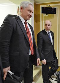 Министр экономического развития России Андрей Белоусов (слева) и министр финансов России Антон Силуанов (справа) перед совещанием по экономическим вопросам в резиденции "Бочаров ручей-2".