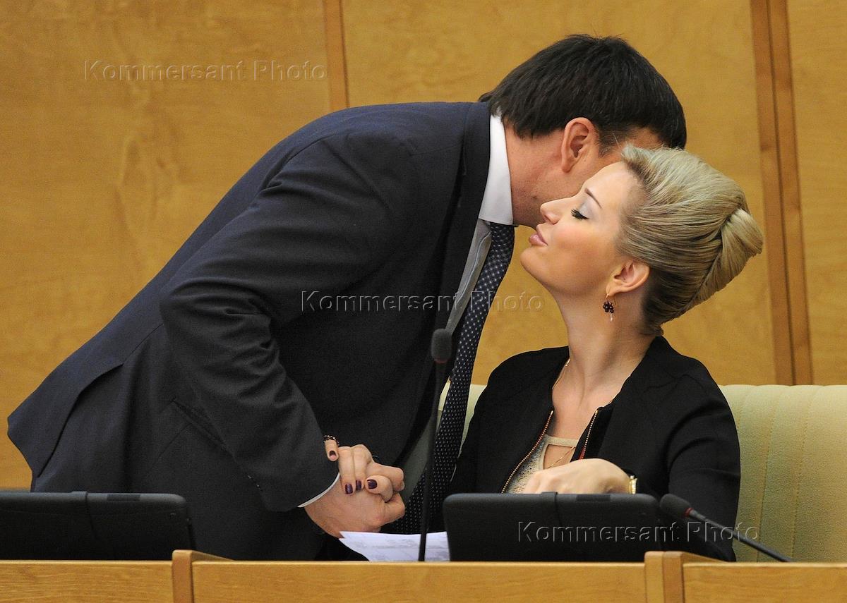 Член комитета Государственной думы (ГД) России по науке и наукоемким технологиям Александр Дегтярев (слева) и председатель комитета ГД по безопасности и противодействию коррупции Ирина Яровая (справа) на заседании Госдумы.