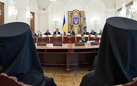 Президент Украины Виктор Янукович (в центре) во время встречи с руководителями церквей и религиозных организаций.