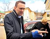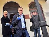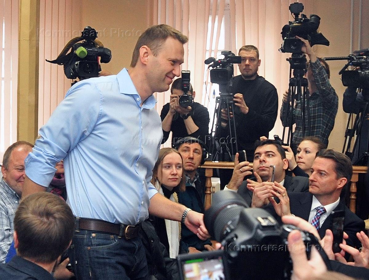 Председатель Координационного совета оппозиции (КСО) Алексей Навальный, обвиняемый в растрате имущества "Кировлеса", после судебного слушания по его делу в Ленинском районном суде города Кирова.
