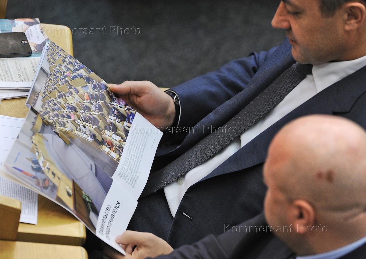 Пленарное заседание Государственной думы России. Депутаты в зале заседаний.