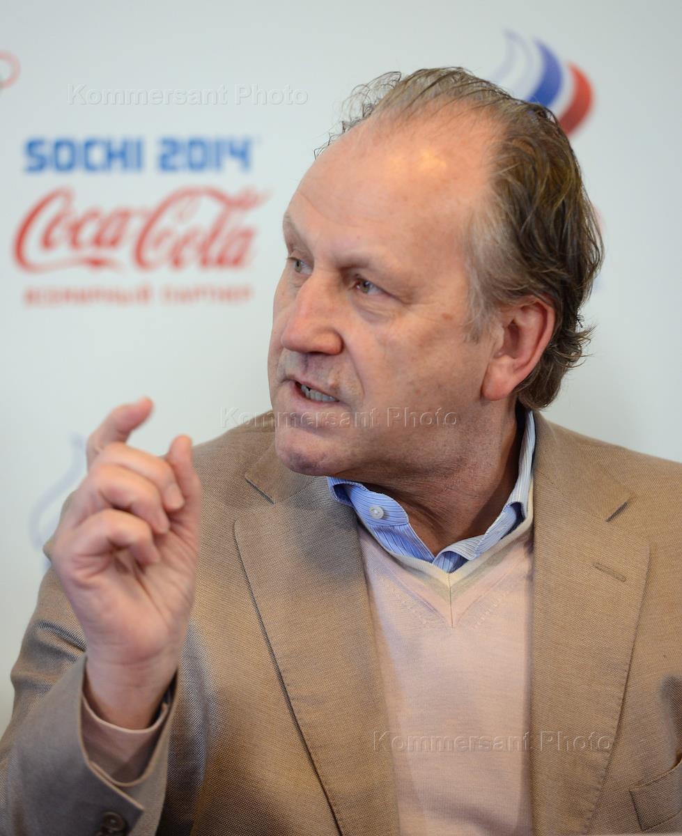 Тренер мужской команды России по керлингу Роджер Шмидт на заседании "Пресс-центра Олимпийской команды России Кока-кола". Заседание, посвященное подготовке сборной России по керлингу к XXII Олимпийским замним играм Сочи 2014, прошло в Керлинг-клубе "Новая лига".