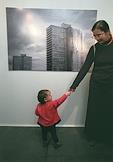 Посетительница с ребенком на выставке художников Пакито Инфанте и Анны Горюновой в "Крокин-галерее"