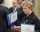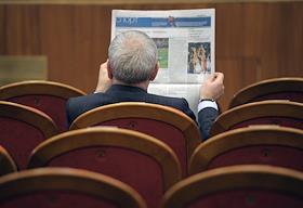 Расширенное заседание коллегии министерства экономического развития России "Об итогах деятельности Министерства в 2012 году и задачах на 2013 год". Участник заседания читает газету "Коммерсантъ".