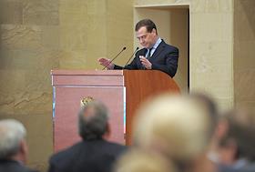 Председатель правительства России Дмитрий Медведев во время расширенного заседания коллегии министерства экономического развития России "Об итогах деятельности Министерства в 2012 году и задачах на 2013 год".