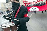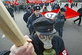 Митинг левых партий, посвященный 85-й годовщине Октябрьской революции на Калужской площади. Представители Национал-большевистской партии с транспарантами.