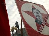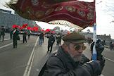 Митинг левых партий, посвященный 85-й годовщине Октябрьской революции на Калужской площади. Участник митинга с Красным Знаменем.