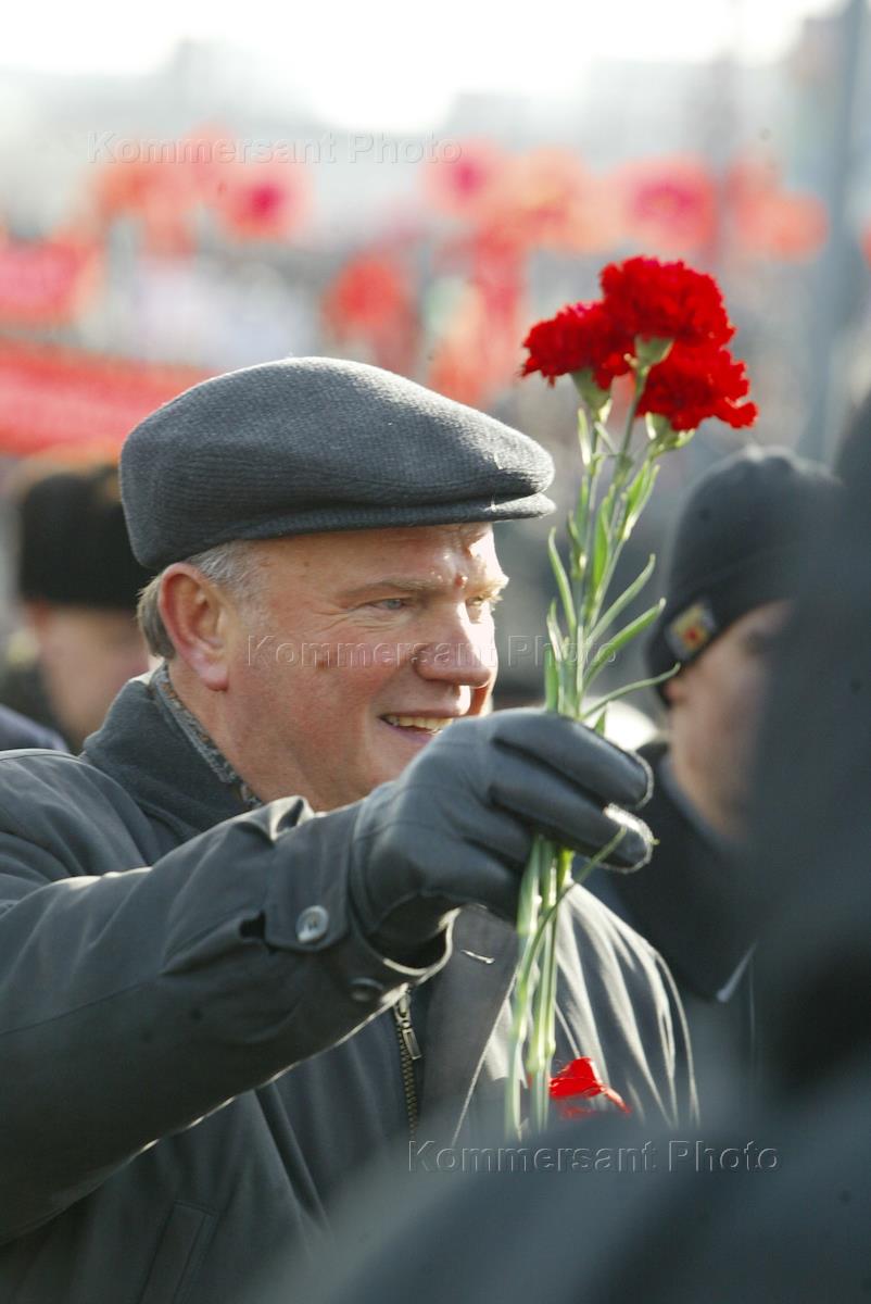 Лидер КПРФ Геннадий Зюганов во время митинга левых партий, посвященного 85-й годовщине Октябрьской революции. Митинг прошел на Калужской площади.