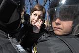 Сотрудники ОМОНа во время дежурства на месте проведения Первомайской демонстрации на Невском проспекте.