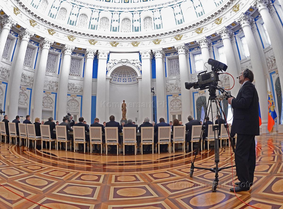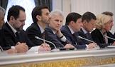 Участники совещания о ходе выполнения указов президента России, подписанных в день вступления в должность главы государства 7 мая 2012 года. Совещание прошло в Кремле.